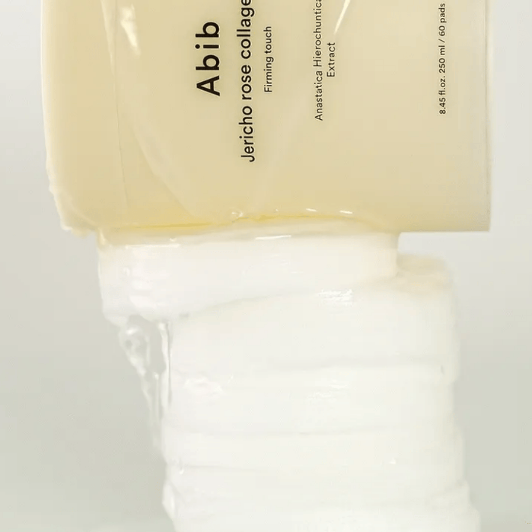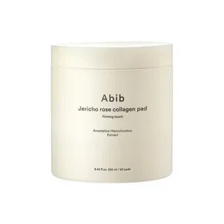 - Abib Jericho Rose Collagen Pad Firming Touch is enriched with Jericho rose to provide a soothing and firming effect on irritated skin in 10 minutes.