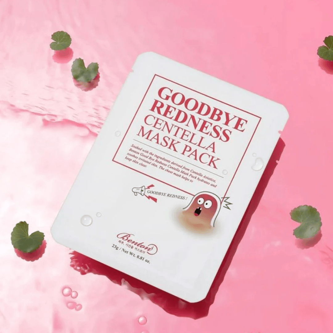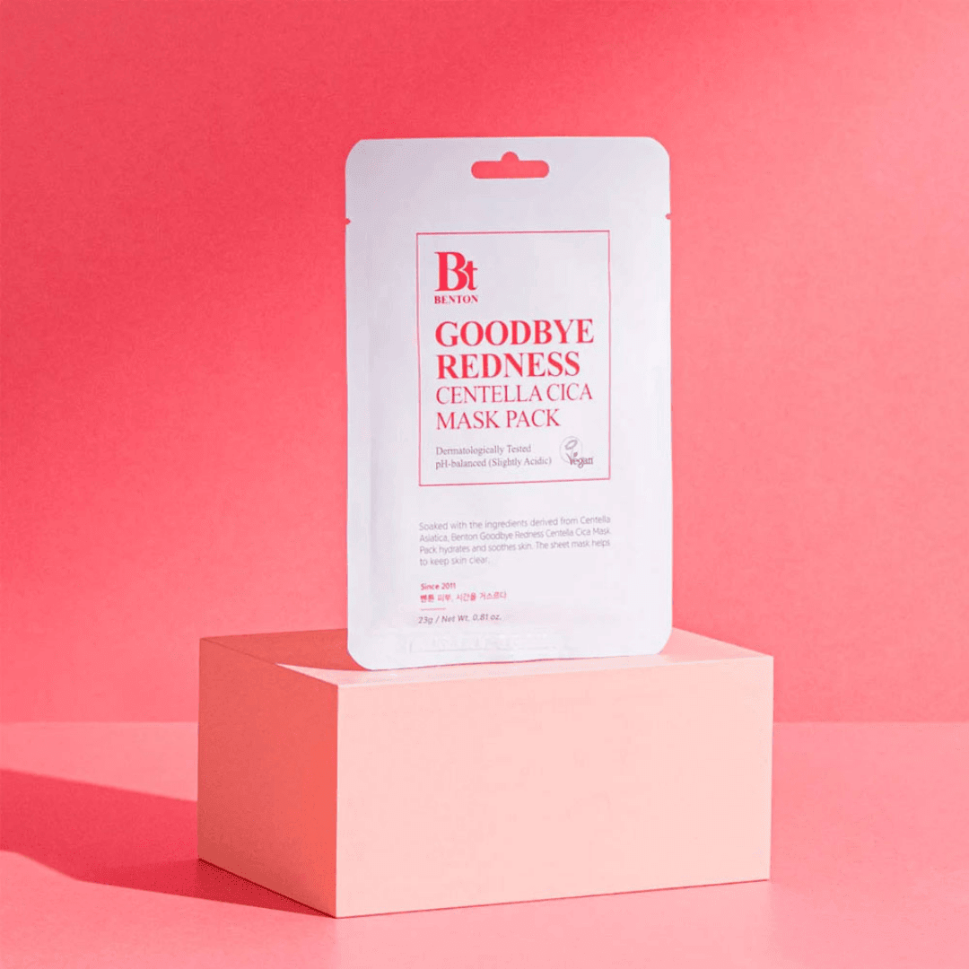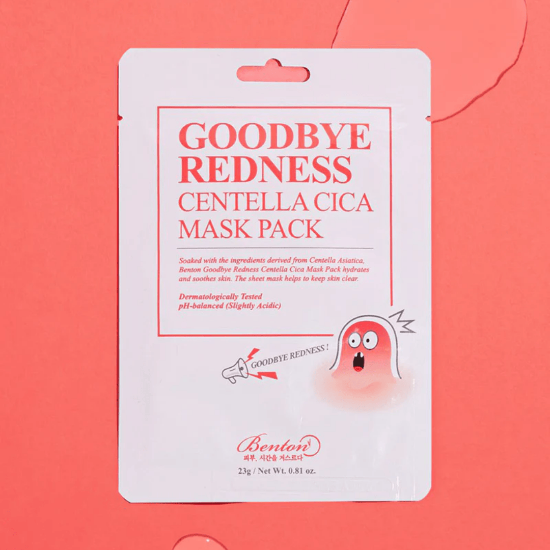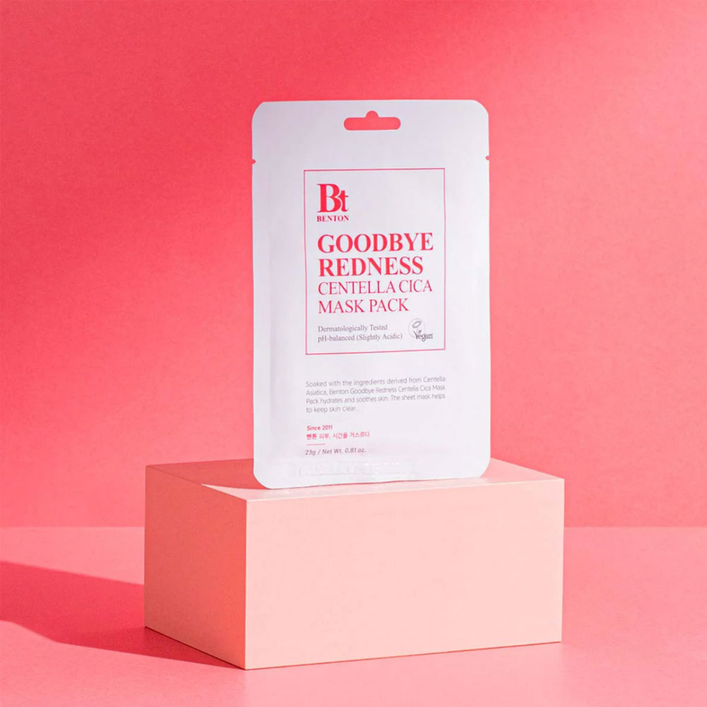 Benton Goodbye Redness Centella Mask Pack Sheet helps to hydrate and soothe skin.