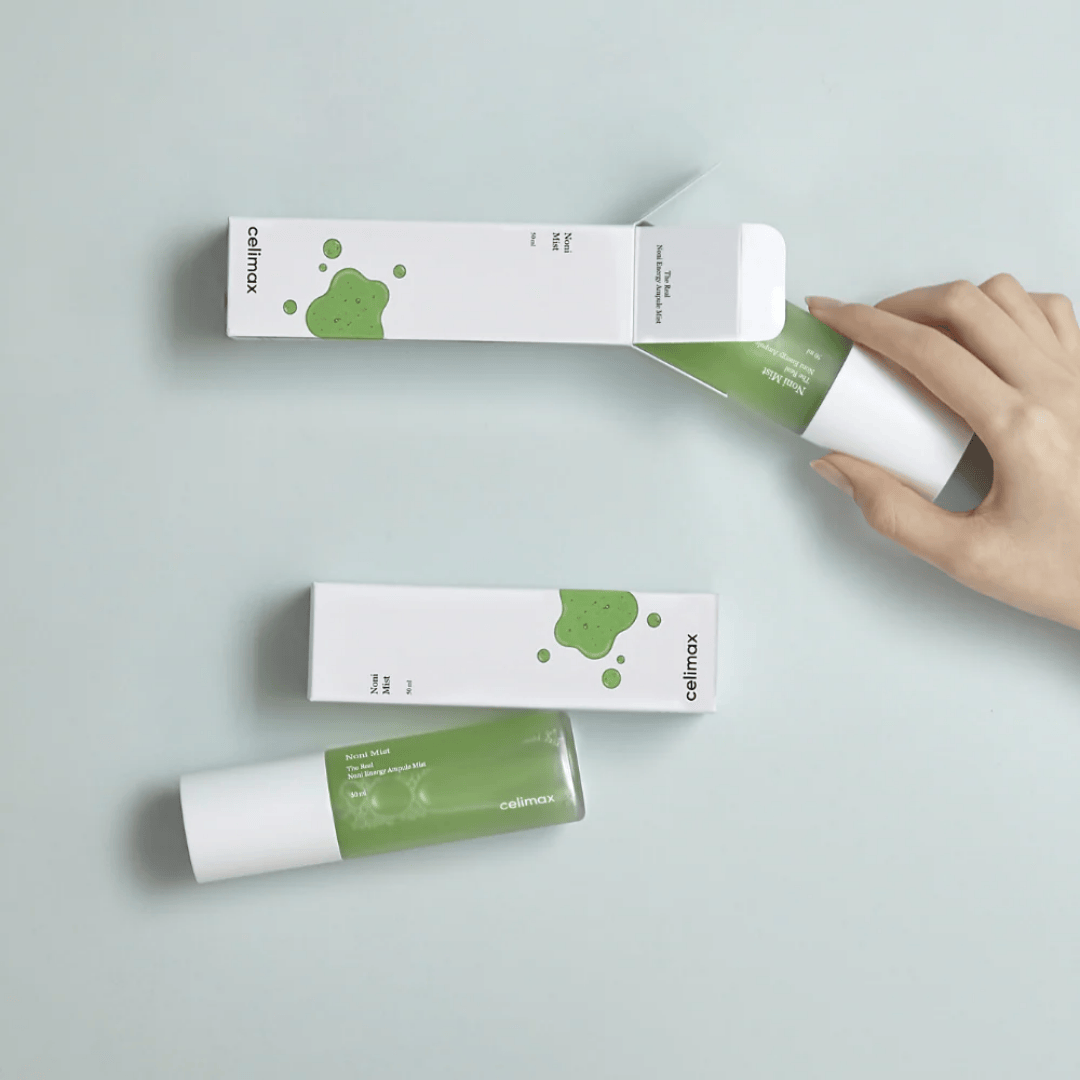 Celimax The Real Noni Energy Ampoule Mist (50 ml) is a hydrating facial mist enriched with 81.67% noni fruit extract, giving over 200 beneficial nutrients to the skin, including antioxidants, vitamins, and minerals. It also contains moisture-attracting ingredients such as hydrolyzed hyaluronic acid, sodium hyaluronate, and polyglutamic acid to help replenish hydration and plump the skin. Soothing agents like copper tripeptide-1, ceramide NP, and botanical oils help calm irritation and support a healthy skin barrier. The formula is free from artificial fragrances and colorants.