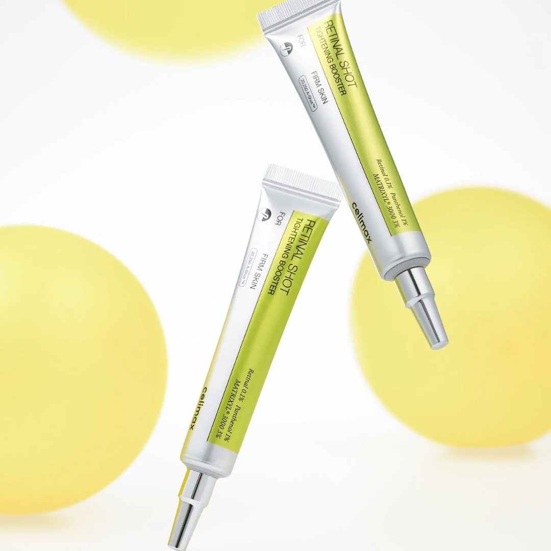 The Celimax Retinal Shot is a skincare booster serum containing 0.1% retinal (a potent vitamin A derivative) combined with peptides and micro-particles to firm skin, reduce pores, and smooth wrinkles.