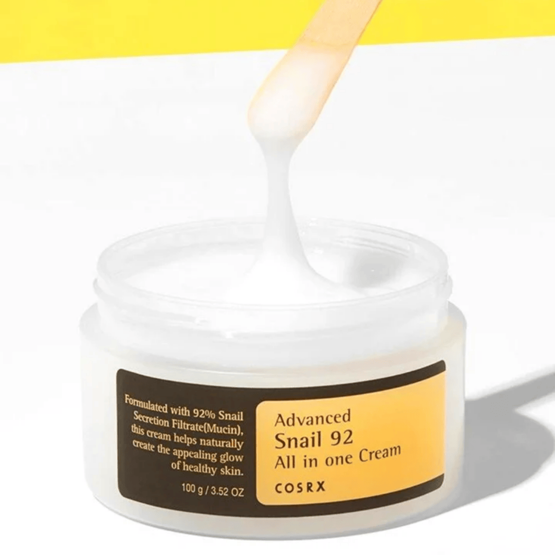 COSRX Advanced Snail 92 All in One Cream is a lightweight, intensely hydrating gel-cream formulated with 92% snail mucin to repair, soothe, and plump the skin.