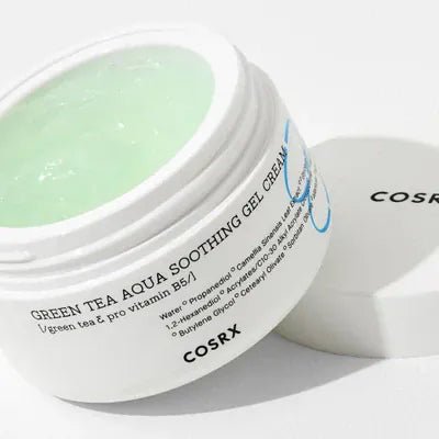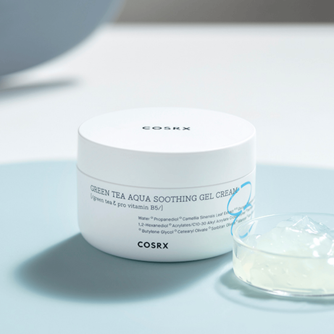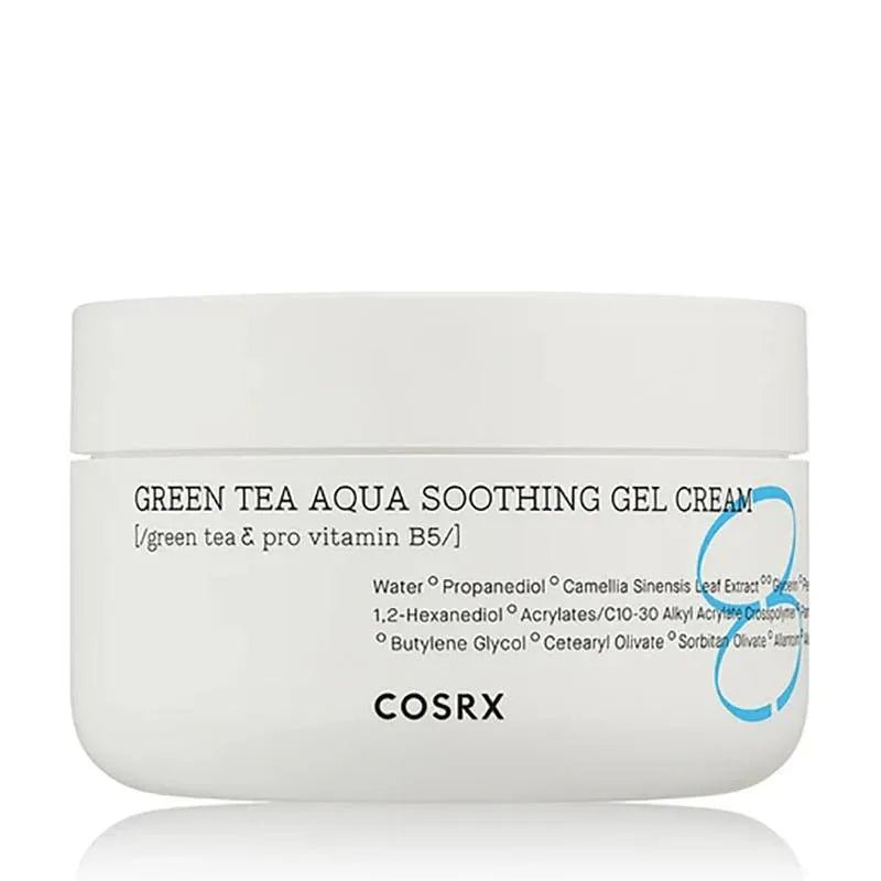 COSRX Hydrium Green Tea Aqua Soothing Gel Cream is a refreshing gel-cream enriched with green tea to soothe and cool irritated skin.