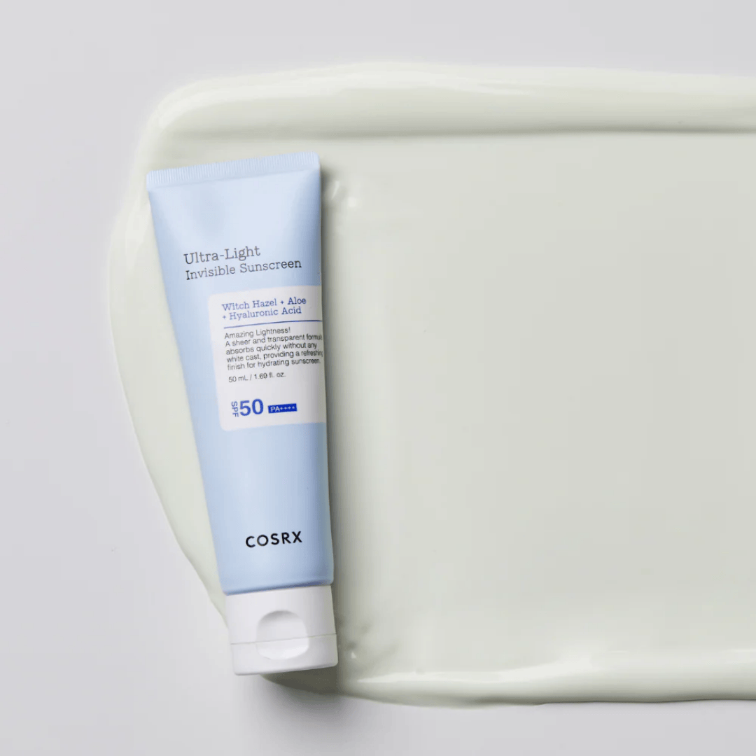 COSRX Ultra Light Invisible Sunscreen is a weightless daily sunscreen with SPF 50+ PA++++ that protects against UV rays while keeping skin comfortable and hydrated.