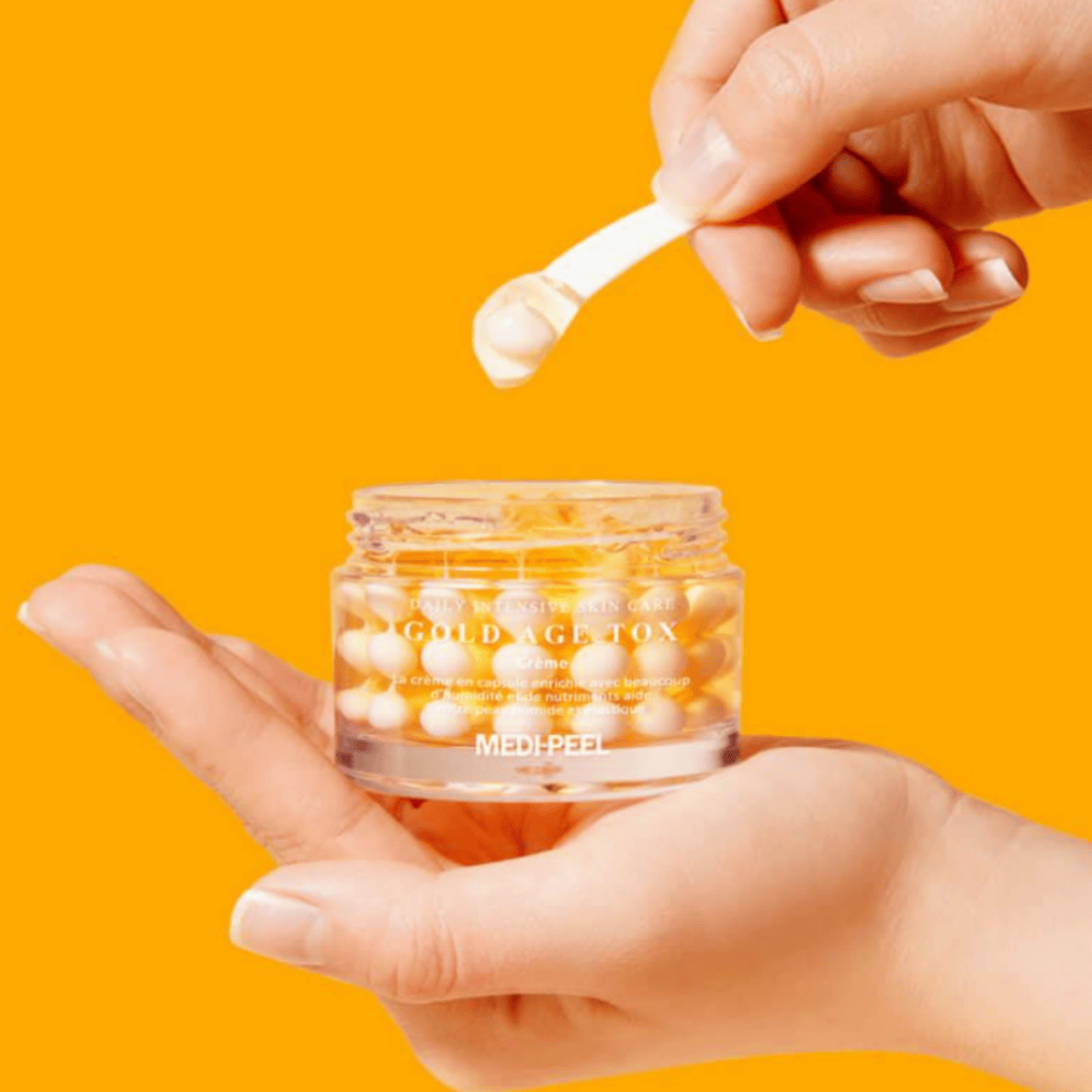 MEDI-PEEL Gold Age Tox H8 Cream helps boost skin elasticity with nutritional capsules, containing 2 kinds of vegetable collagen and adenosine.
