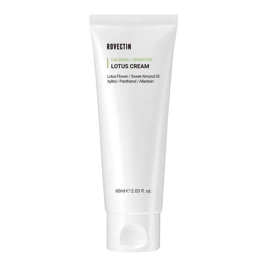 The ROVECTIN Calming Lotus Cream is a lightweight, vegan moisturizer formulated with 75% lotus flower extract to soothe, hydrate, and strengthen a sensitive or irritated skin barrier. Enriched with niacinamide, panthenol and allantoin, it aims to visibly even skin tone, calm redness, and support skin resilience while providing lasting moisture without heavy texture. Suitable for all skin types, particularly those prone to sensitivity or post-treatment irritation.