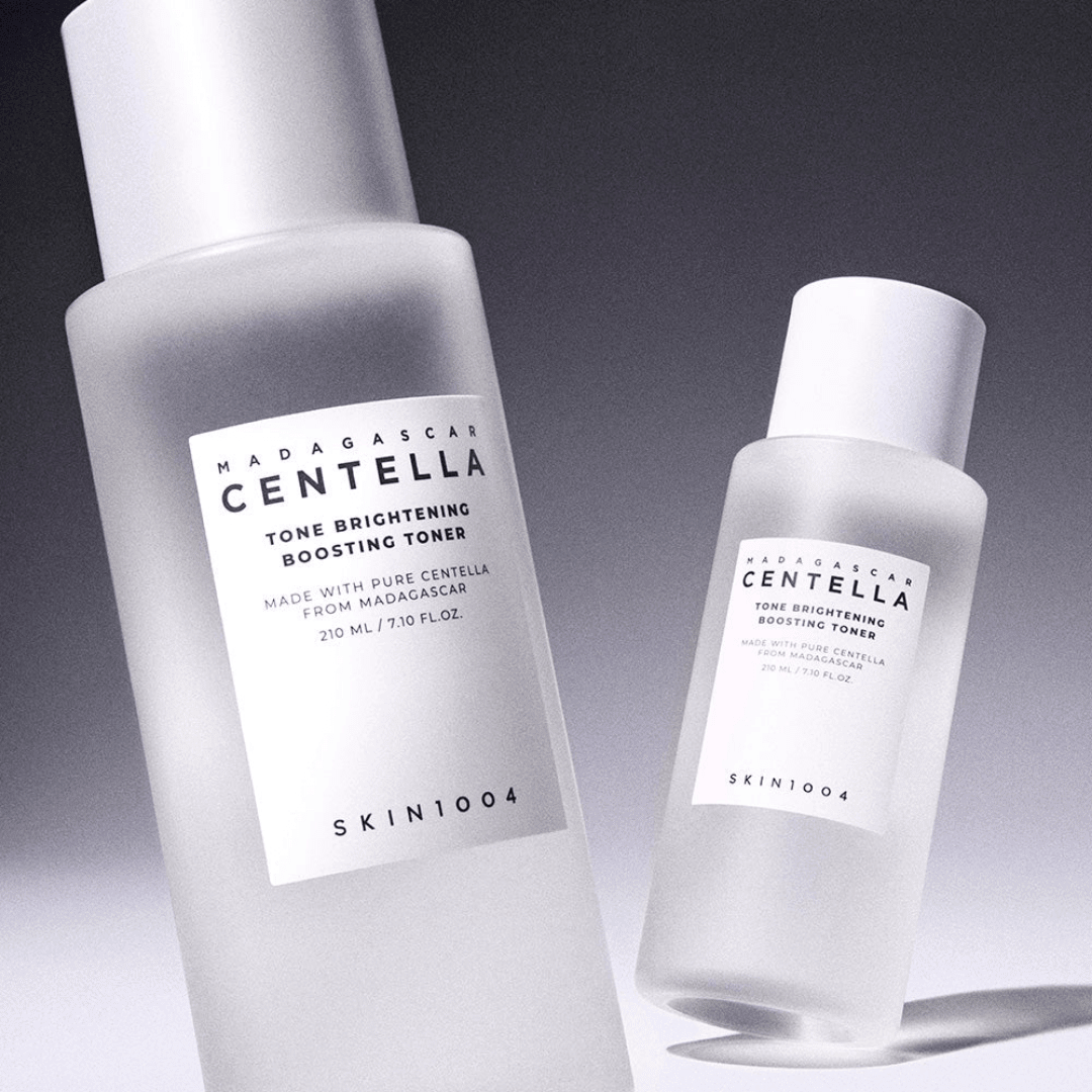Skin1004 Madagascar Centella Tone Brightening Boosting Toner 210ml is a hydrating, gently brightening toner formulated with ~90% Centella Asiatica Extract to soothe and strengthen the skin barrier. It features Madewhite™, a patented ingredient derived from Centella (madecassoside) to reduce dark spots and even out skin tone, plus the Singreen complex (fruit extracts: apple, plum, papaya, grape) to gently exfoliate dead skin cells and boost radiance. Also enriched with Niacinamide and 3-O-Ethyl Ascorbic Acid (a stable vitamin C derivative), this toner delivers moisture, glow, and improved texture. Its watery texture absorbs quickly and it is free of alcohol, parabens, and added fragrance.