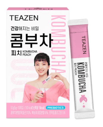 Teazen Kombucha Peach is a peach-flavoured instant kombucha drink powder containing probiotics and antioxidants to support gut health and detoxification. Each 5g stick is low in calories and dissolves easily in water.