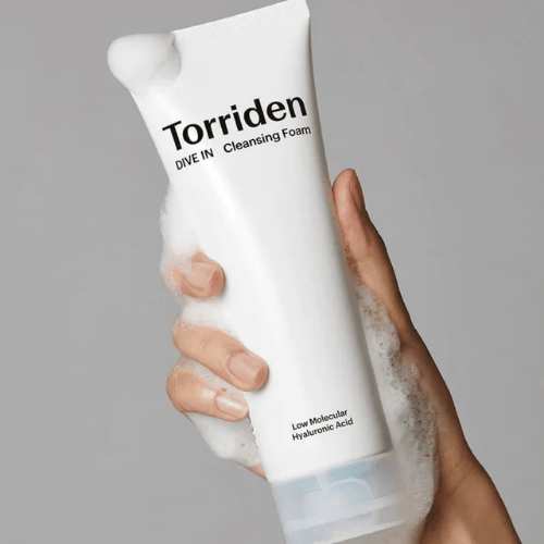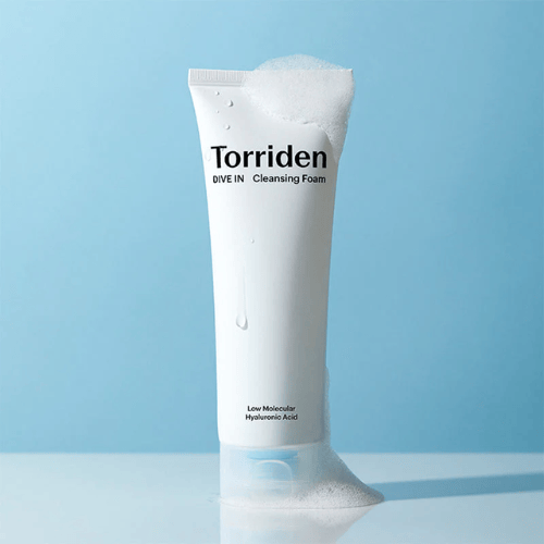 Torriden DIVE-IN Low Molecular Hyaluronic Acid Cleansing Foam is a vegan, pH-balanced cleanser that thoroughly removes dirt, impurities and makeup residue from skin with a gentle touch.