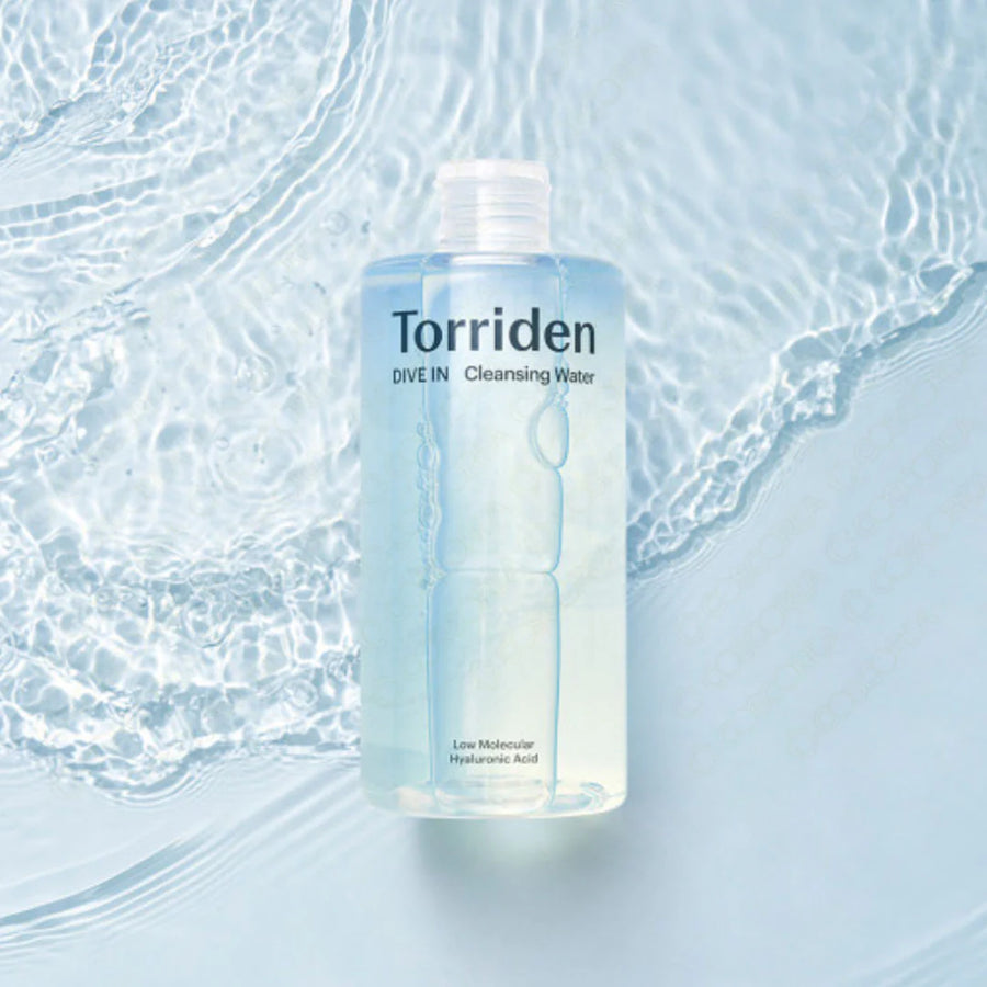 Torriden DIVE-IN Low Molecular Hyaluronic Acid Cleansing Water - A clean and vegan cleansing water that instantly removes dirt, impurities, and makeup residue from face without irritating.