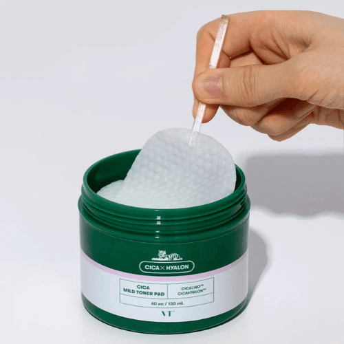 VT Cosmetics Cica Mild Toner Pad helps smoothing out skin texture while balancing skin.